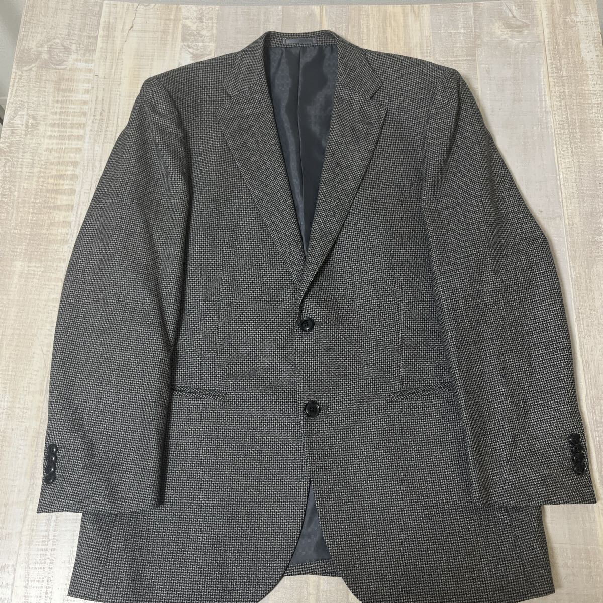 - 【高級感抜群 上質ウール】REGAL 千鳥格子 2B テーラード ジャケット リーガル グレーブラック メンズ トラッド サイズAB7