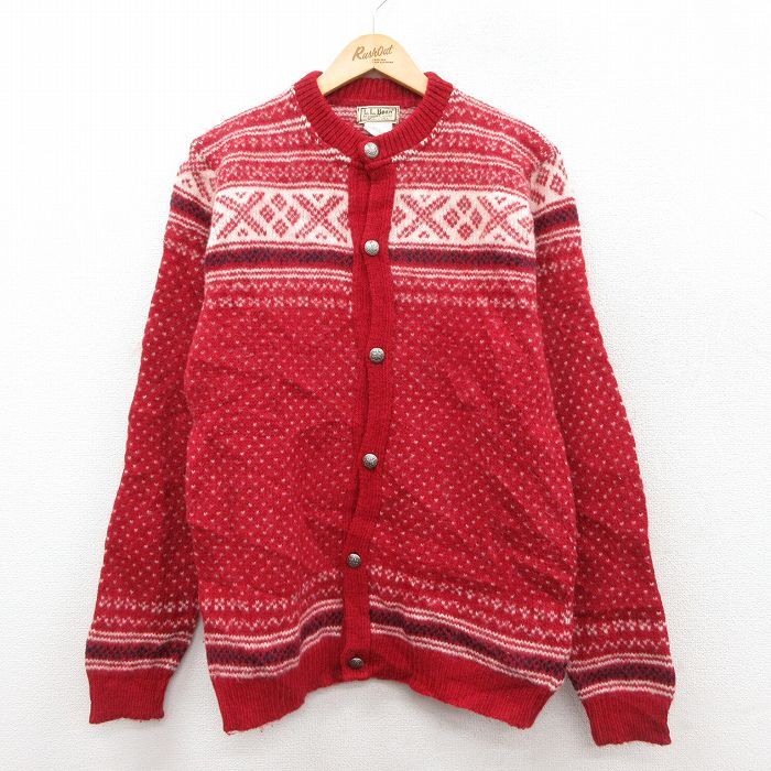 - M/古着 エルエルビーン LLBEAN 長袖 ニット カーディガン メンズ 80s ウール 赤他 レッド spe 25sep30 中古 トップス