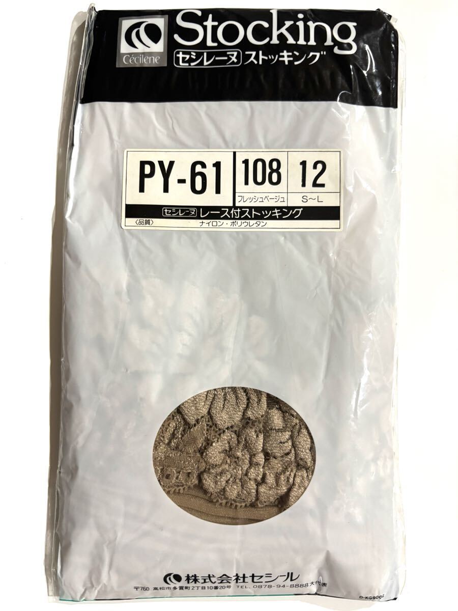 - S〜Lサイズ セシール セシレーヌ レース付ストッキング(PY-61) 太もも丈 ストッキング フレッシュベージュ ガータータイプ