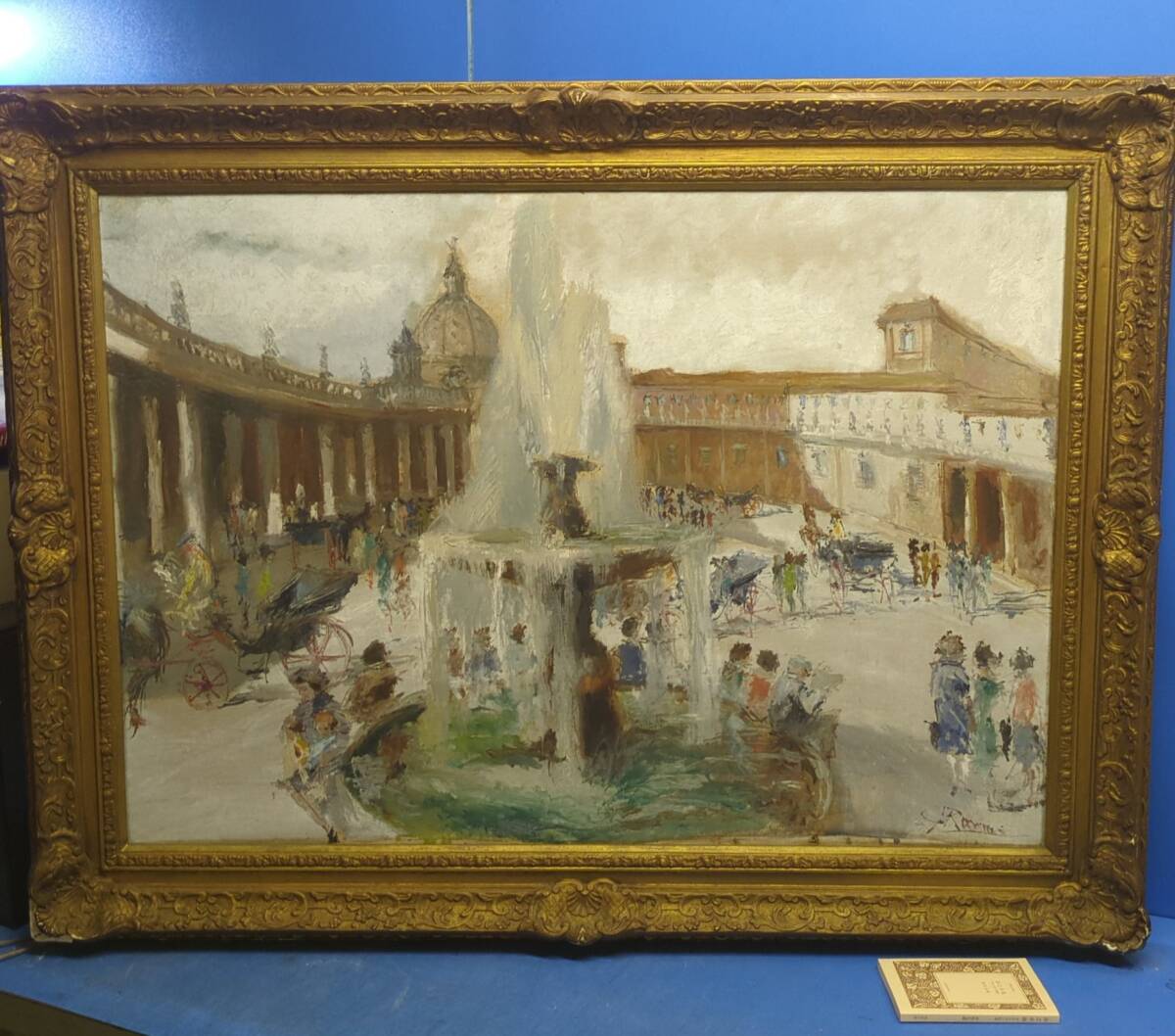 > kankando「作者不詳 油彩40号変 噴水のある風景 サイン入 67cm×97cm 額装」わかる方お願いします《真作》