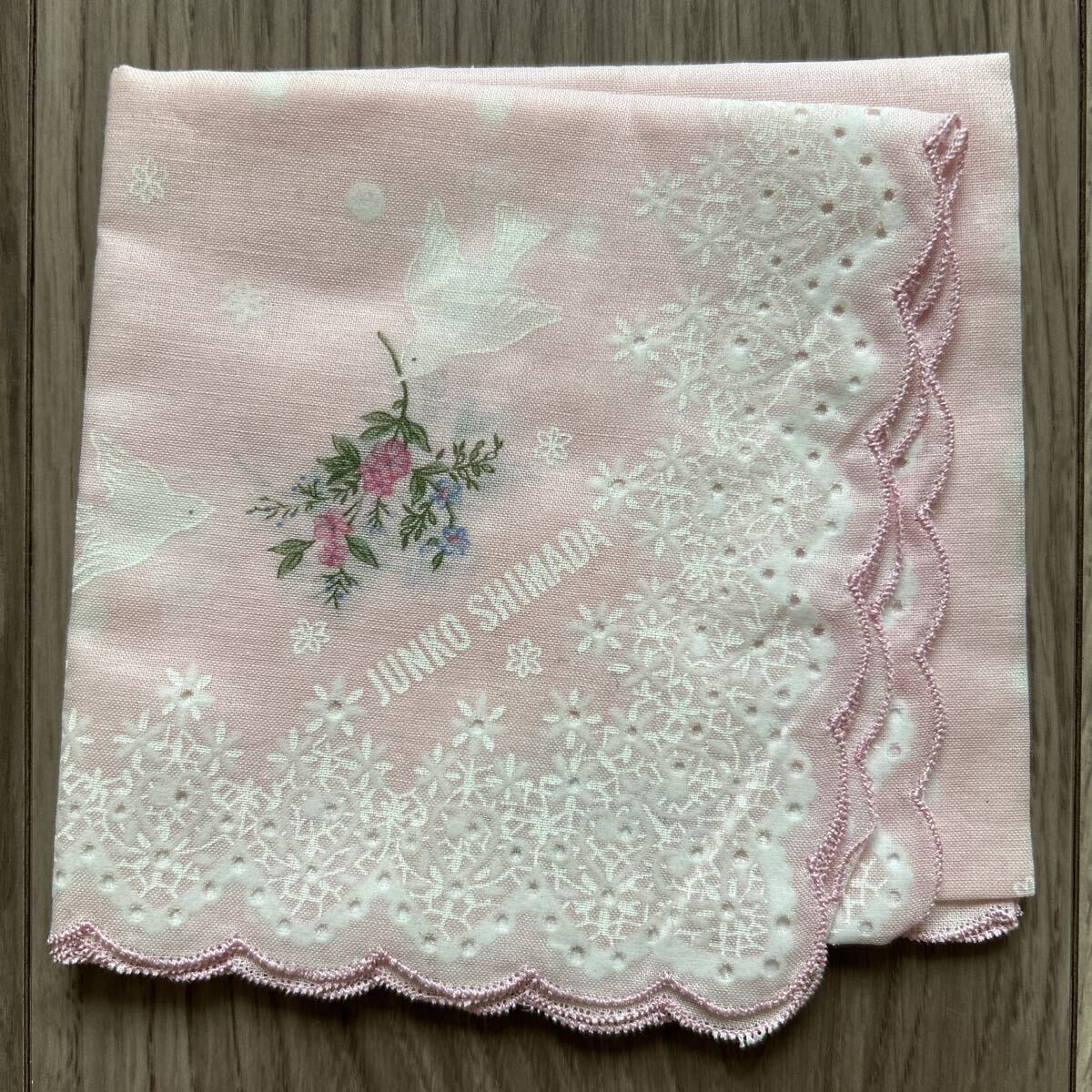> JUNKO SHIMADA ピンク 花柄 ハンカチ ジュンコ シマダ 新品 未使用 かわいい おしゃれ 桃色 ハト 鳥 花 フラワー 高級感 島田 順子