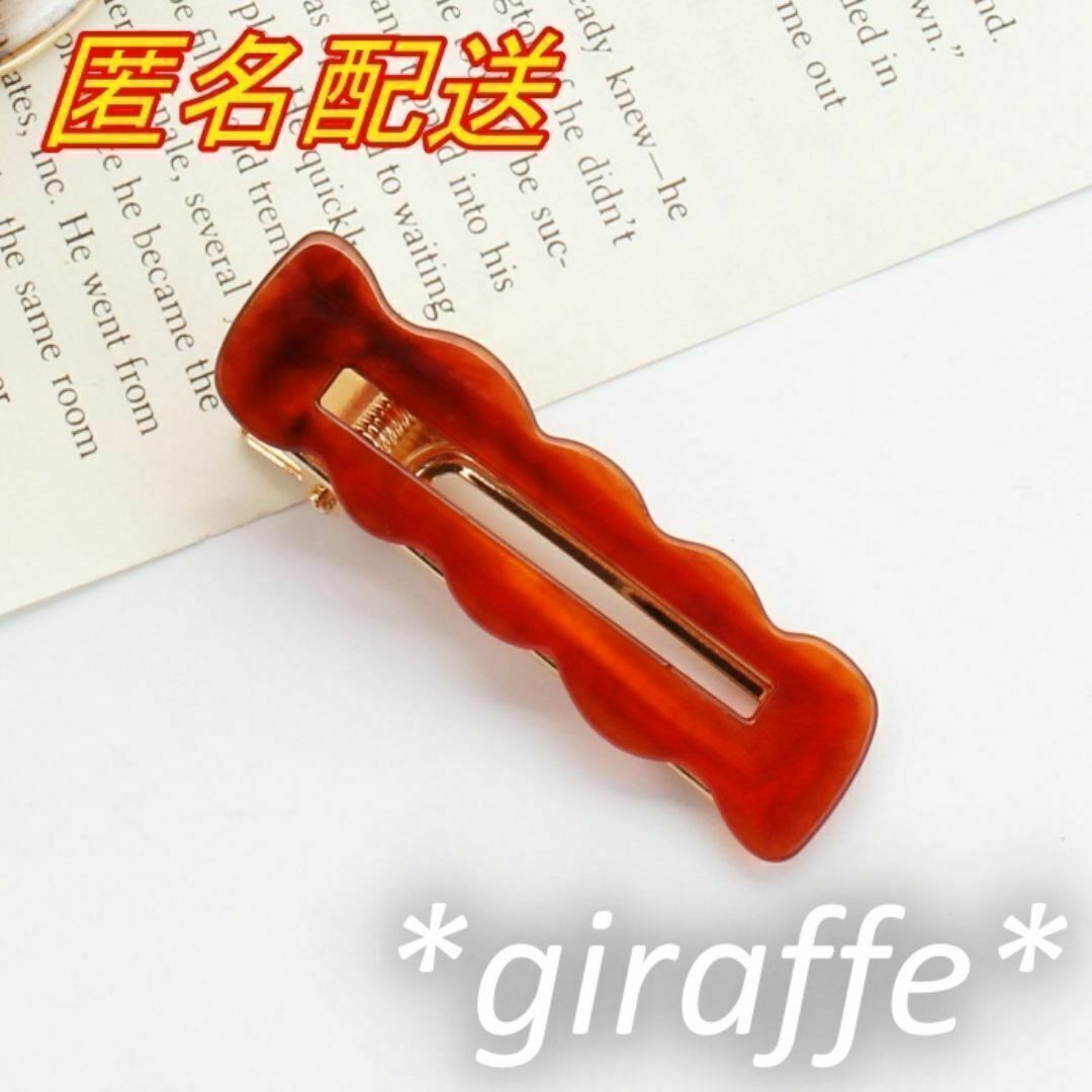 > E444 匿名配送 ヘアクリップ 波状 スクエア レッド ブラウン 前髪クリップ サイドグリップ ヘアピン 髪留め ヘアアクセサリー