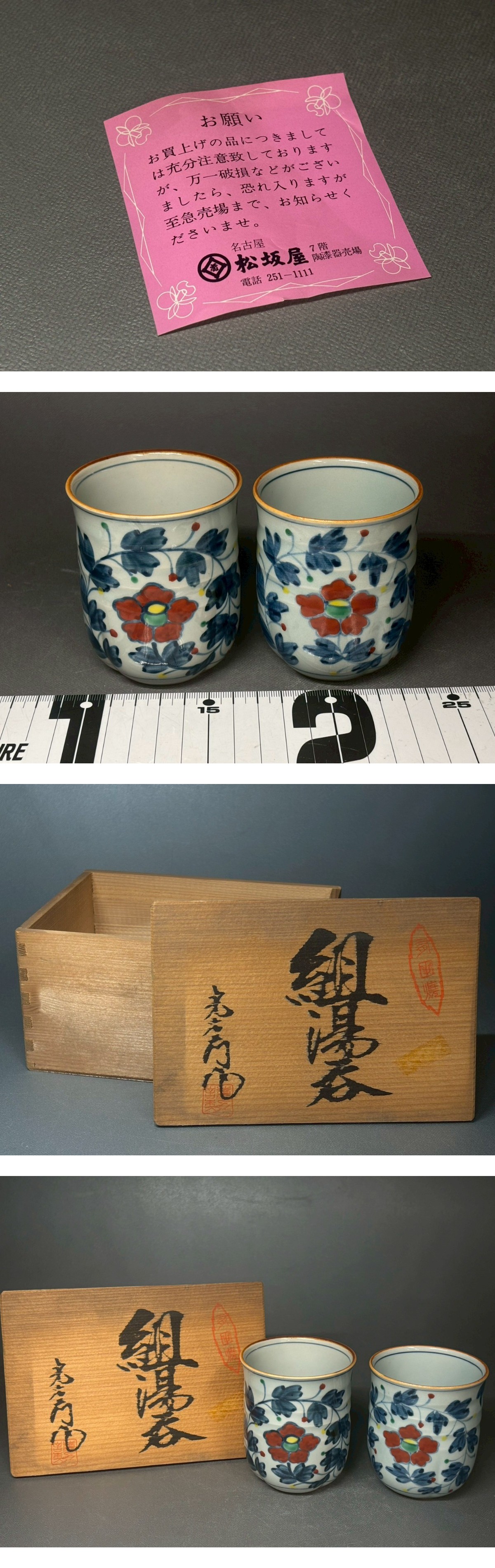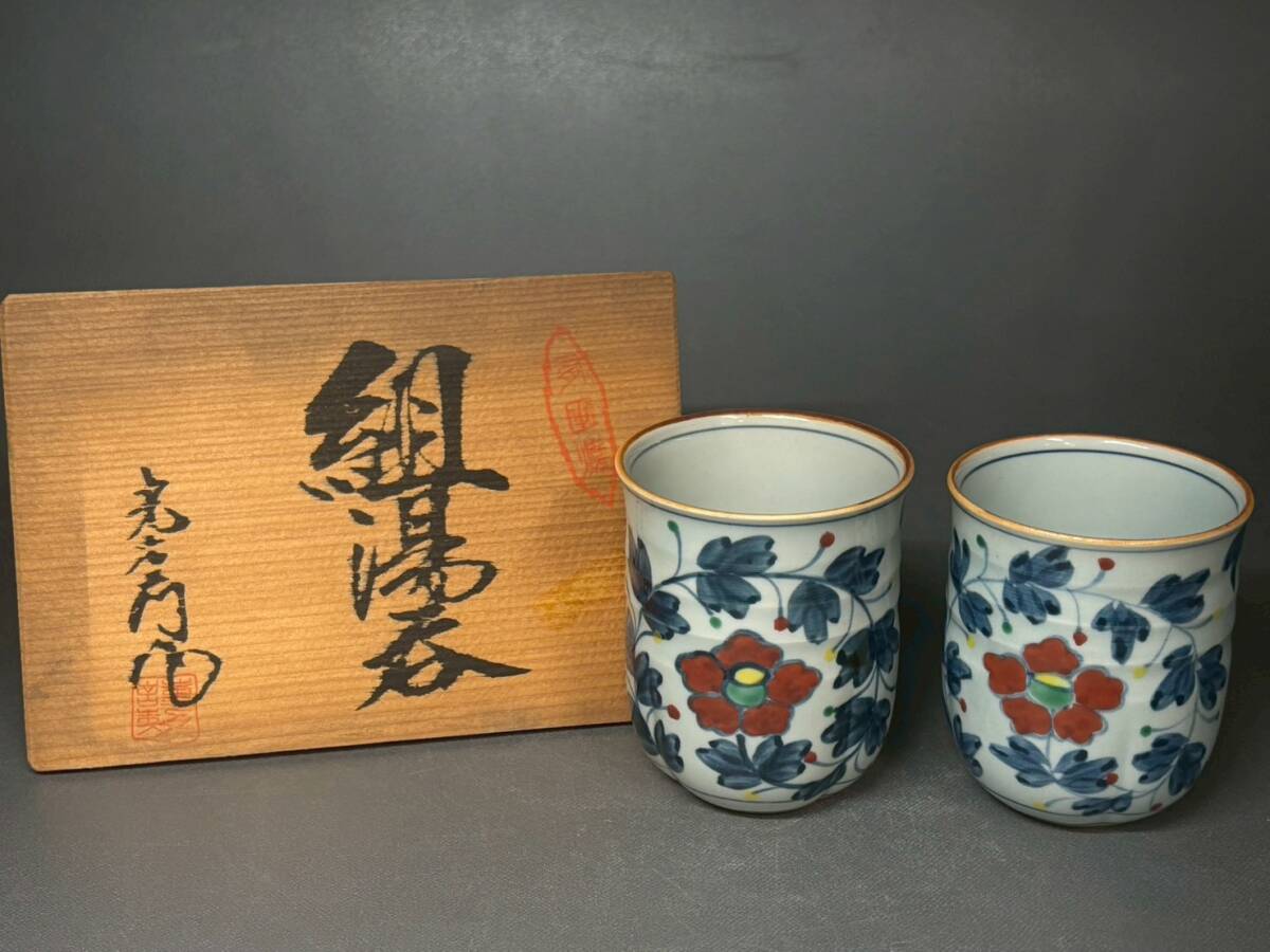 - 組湯呑 作家物 骨董 置物 飾物 日本伝統工芸品 芸術 古美術 茶道具 茶器 夫婦 来客 湯飲 茶用品 陶磁器 食器 和 在銘 初出70