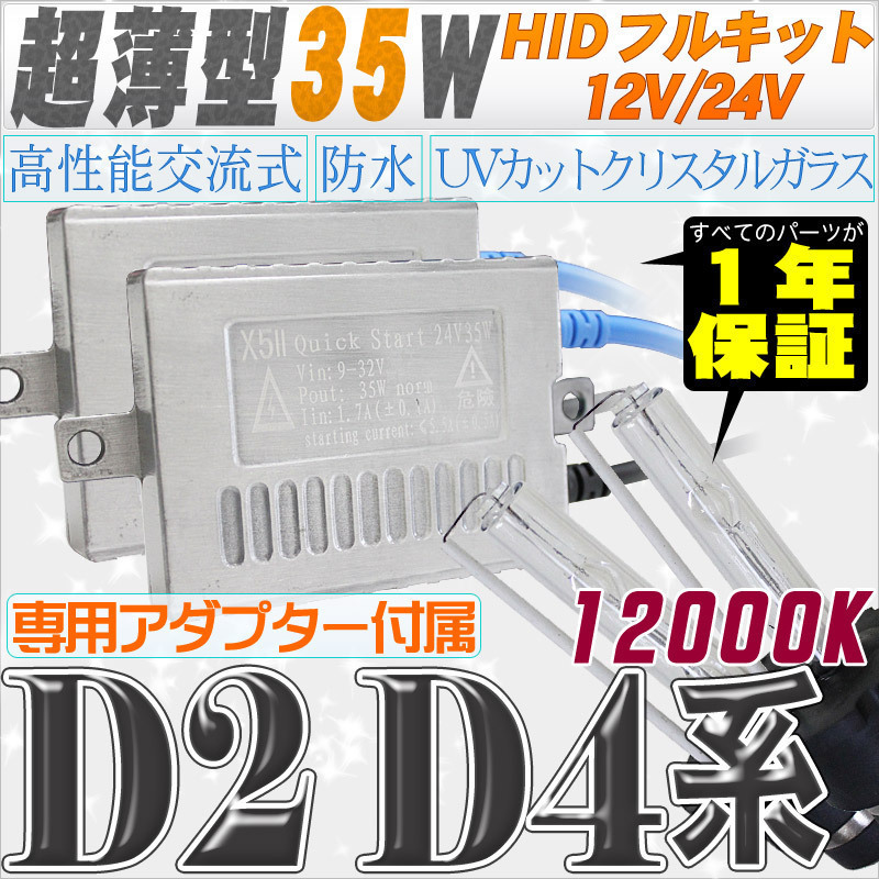 - 高性能 薄型HIDキット 35W【D2C/R/S】【D4C/R/S】 12000K 12V/24V 【交流式バラスト&クリスタルガラスバーナー】