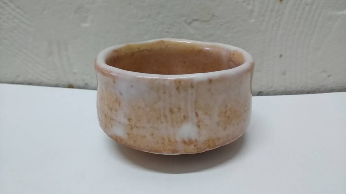 - ☆☆【美術 陶磁器・インテリア】志野焼 美濃焼 白釉かけ ぐいみ 鑑賞盃/酒器 盃・ぐい呑み・猪口/陶印 作家物