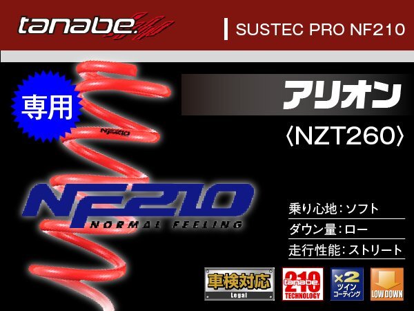- タナベ ダウンサス アリオン/プレミオ 2WD NZT260/ZRT260 【H19/6~】 NF210 トヨタ TOYOTA SUSTEC NZT260NK