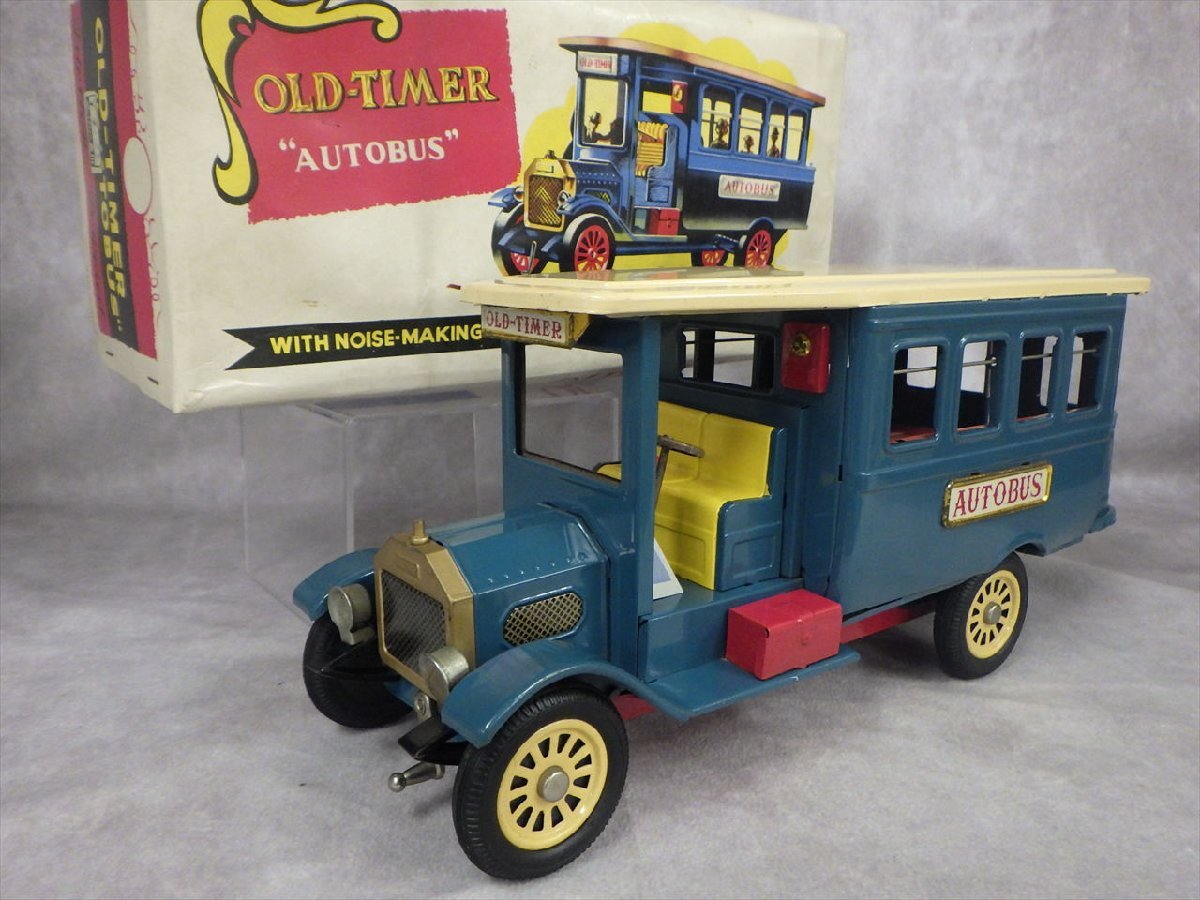 - J4 当時物 SSSインターナショナル オートバス 33cm OLD TIMER AUTOBUS クラシックカー ブリキ 日本製 フリクション クランク 動作品 自動車