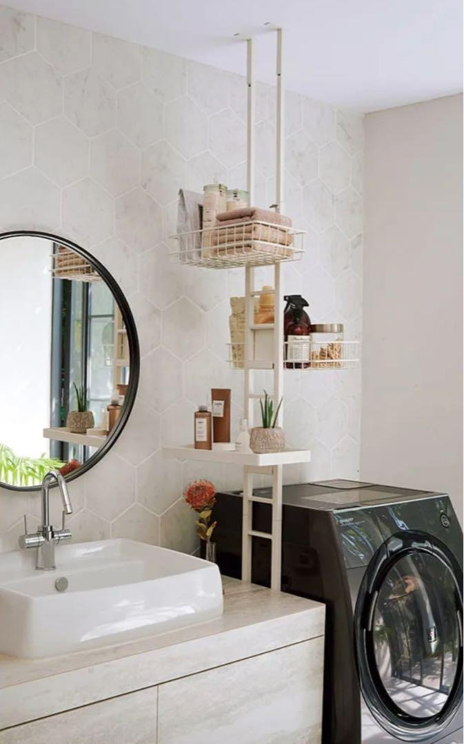 - 【新品未使用】ディノス 新1本脚モダンランドリーラックトレー棚1段カゴ2