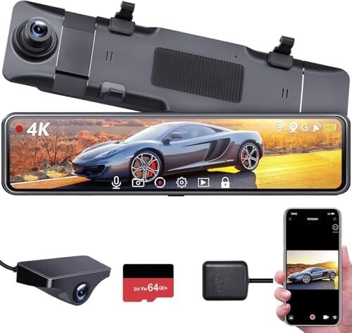 - 【送料無料】ドライブレコーダー ミラー型 ドラレコ 前後カメラ 【前4K+後1080P 】【w-ifi機能/GPS】内蔵【大容量
