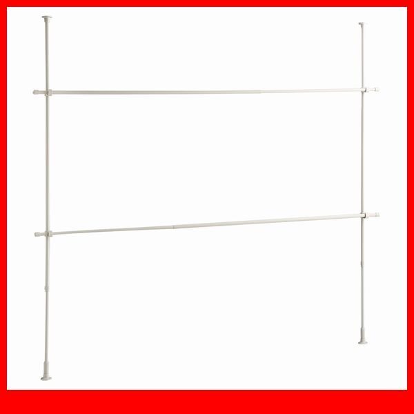 - ハンガーラック★新品/シンプル つっぱりハンガーラック 2段 幅170~250cm 高さ調整可能/ビス止め不要 賃貸OK/ホワイト/a3