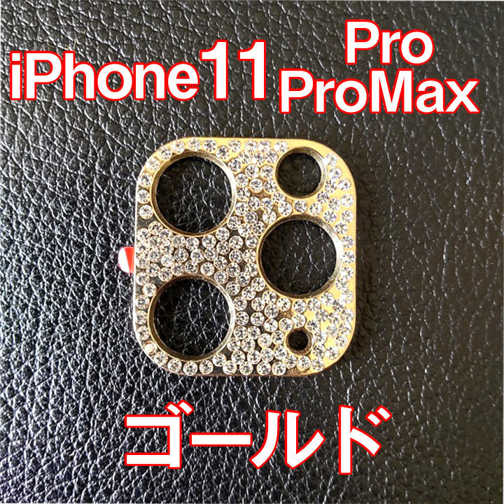 - iPhone11 Pro Max 専用 カメラレンズカバー ゴールド ラインストーン キラキラ