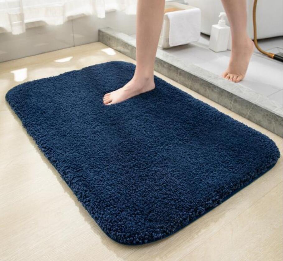 - 新品 * バスマット 60×90cm 吸水速乾 大判 広め 足拭きマット 毛足が長い 厚手 ふわふわ バスマット * ネイビー