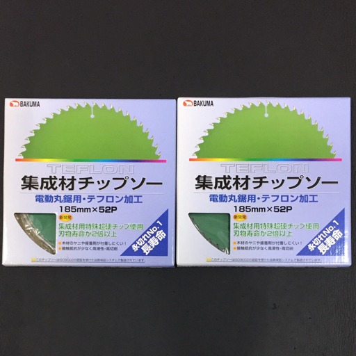 - バクマ 集成材 チップソー 電動丸鋸用・テフロン加工 185mm×52P 日本製 紙ケース付き 計2点 セット 現状品