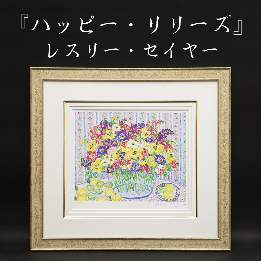 > Leslie Sayour レスリー・セイヤー『ハッピー・リリーズ』238/250 シルクスクリーン 静物画 絵画 美術品 額装 アート 真作保証品 古美術品