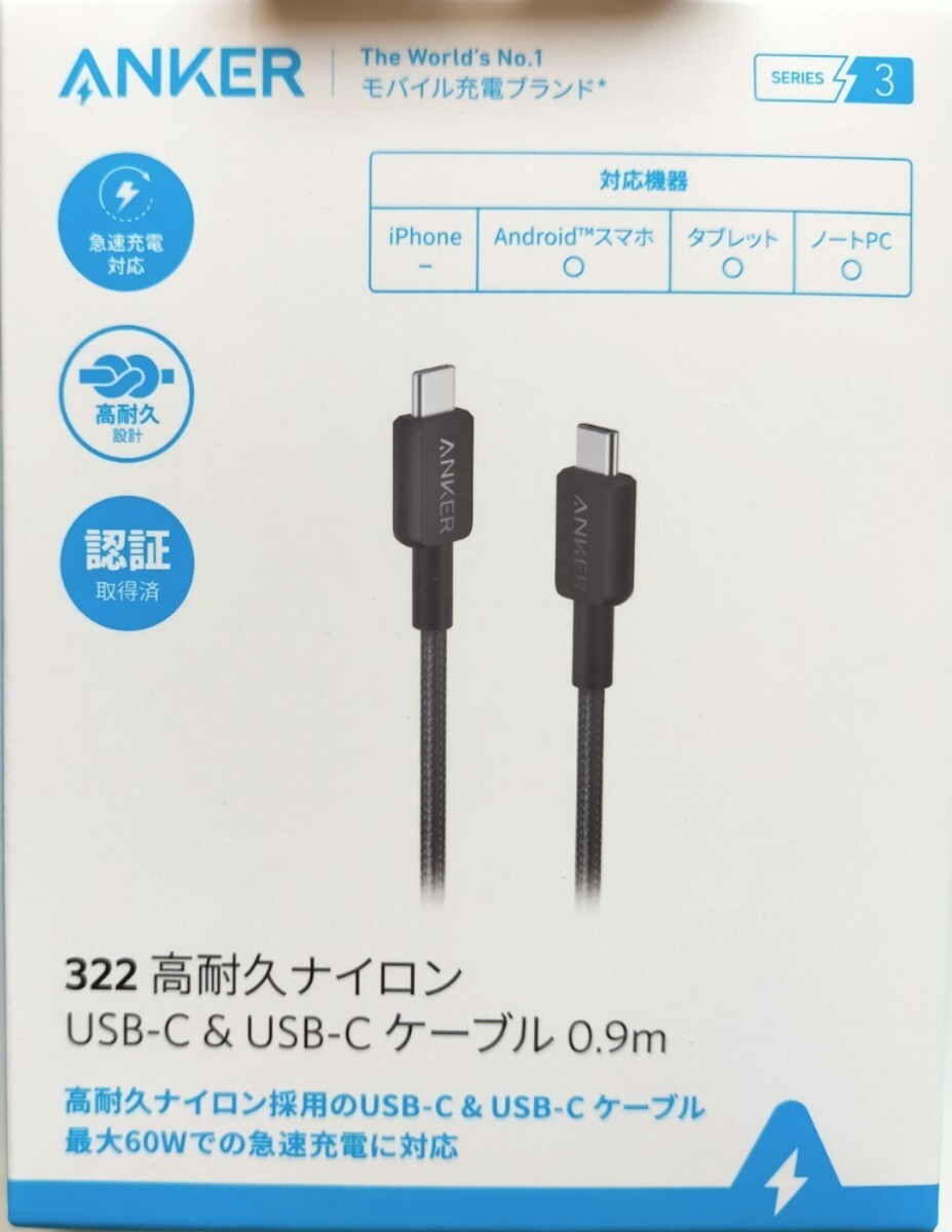 - Anker 高耐久ナイロン USB-C & USB-C ケーブル 0.9m ブラック A81F5N11 新品未使用 送料無料