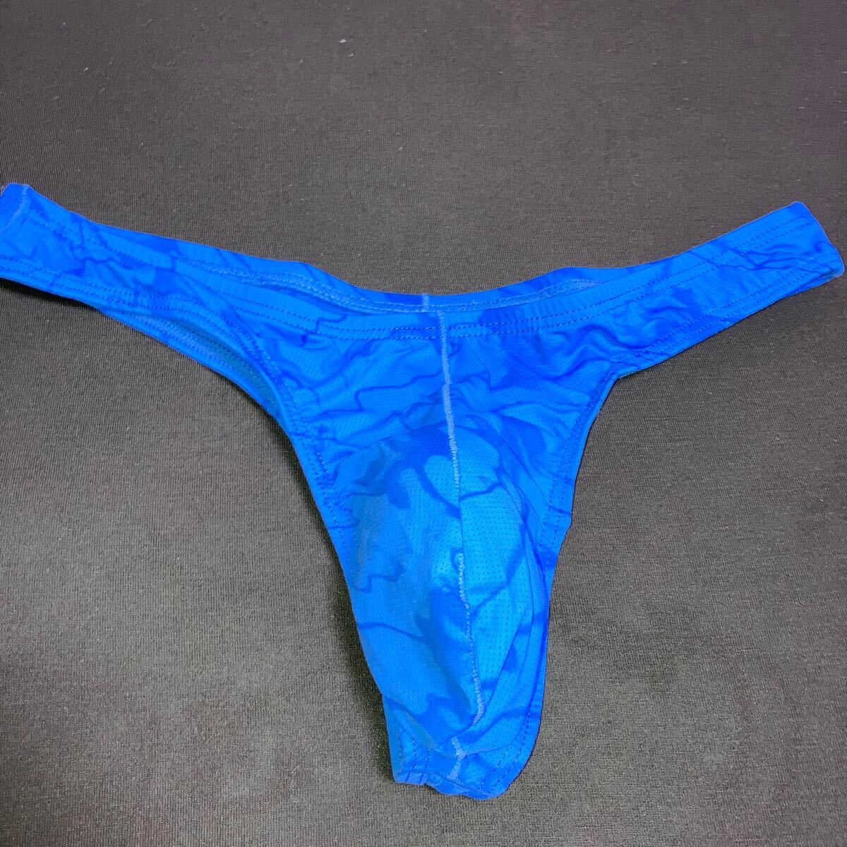 - メンズショーツ、セクシー、ナイロンパンティー、Tバック、男前、ブルー、モッコリ