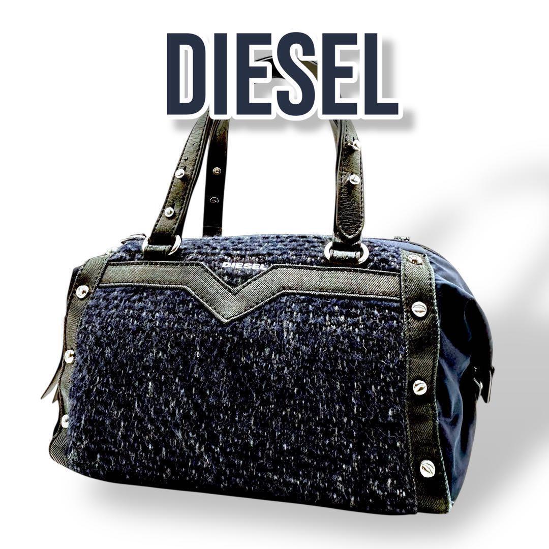 - 【希少】ディーゼル DIESEL ハンドバッグ ネイビー 切替 良品 スタッズ 切り替えデザイン エンブレム スタッズ 紺