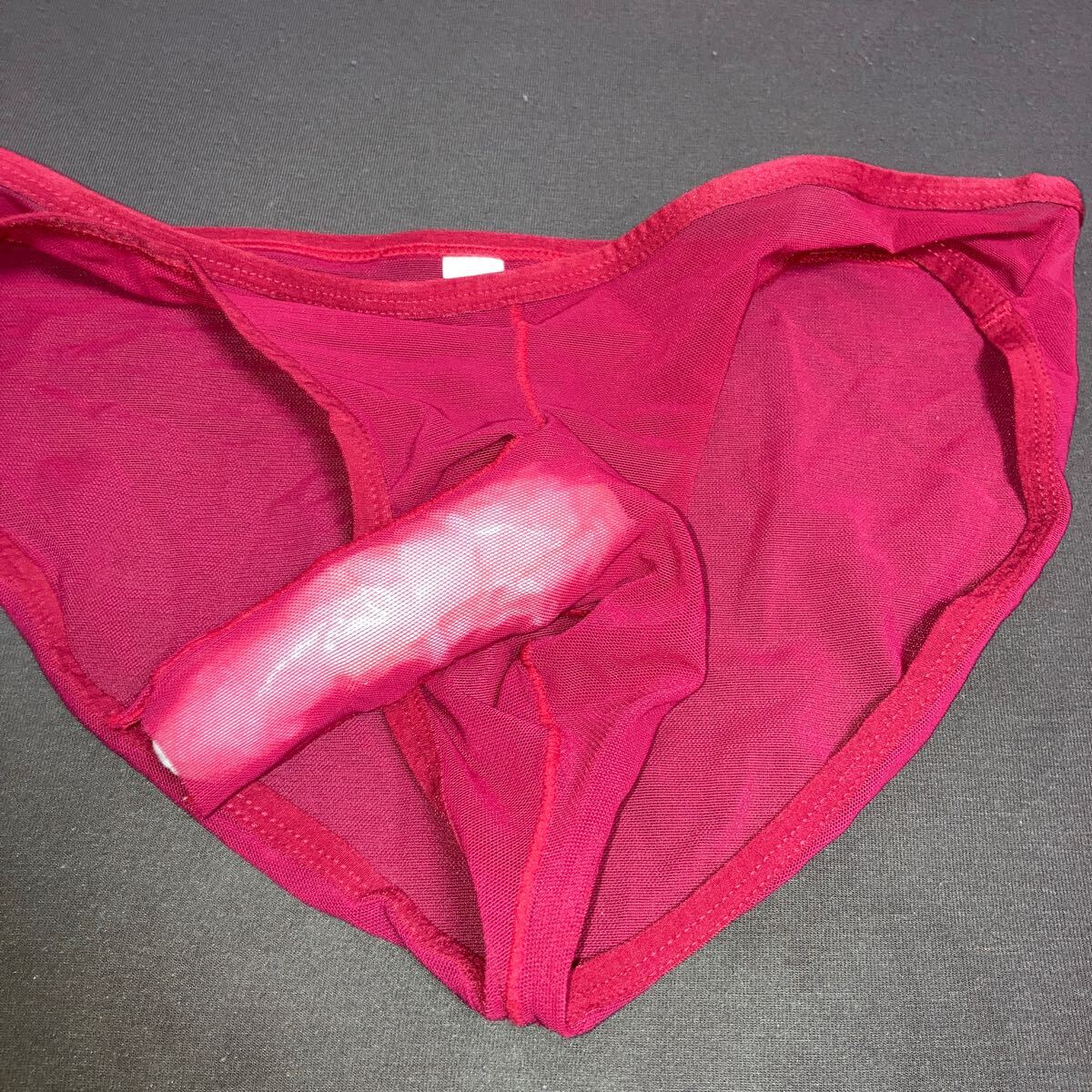- メンズフルバックショーツ、セクシー、レッド、メッシュ生地 L