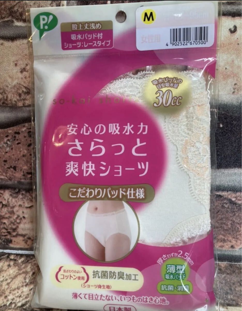 - 日本製でお洒落なデザイン!【Lサイズ】さらっと爽快!抗菌防臭加工《ピップ》尿吸収パッド付きショーツ1枚1629円が