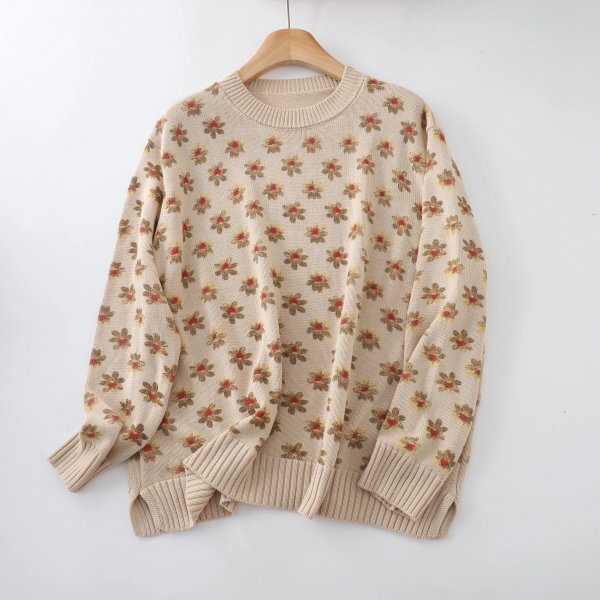 > wnm 綿100% チュニック トップス ニット セーター フリーサイズ ゆったり 肌触り抜群 プリント花柄2