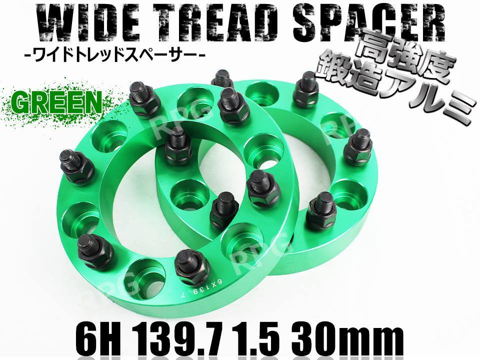 - ハイエース 200系 ワイトレ 6H 2枚組 PCD139.7-1.5 30mm ワイドトレッドスペーサー (緑)
