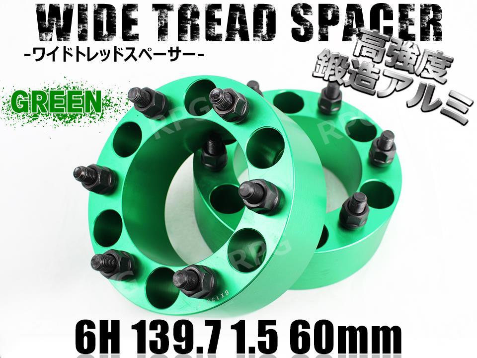 - ハイエース 200系 ワイトレ 6H 2枚組 PCD139.7-1.5 60mm ワイドトレッドスペーサー (緑)