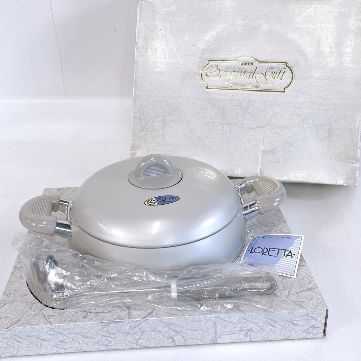 - ☆未使用/保管品☆ RIKEN LORETTA ロレッタギフトセット(24cm/3.6L浅型鍋・お玉) リケン 理研軽金属 アルミ両手鍋 日本製 調理器具