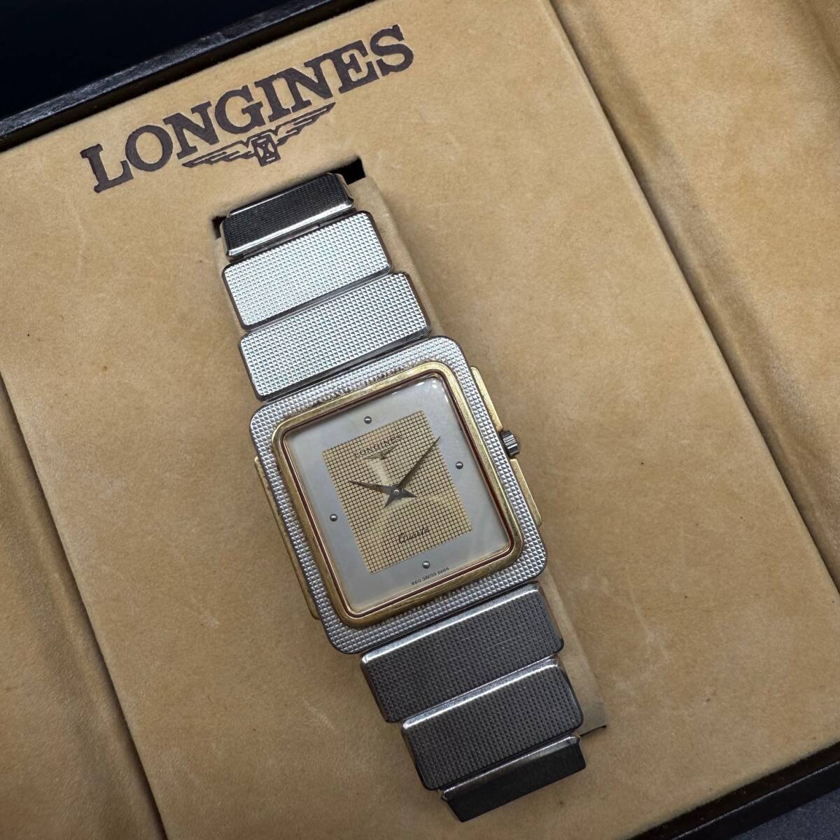 - LONGINES ロンジン QZ スクエア ゴールド シルバー メンズ 腕時計 2針 箱 ヴィンテージ かっこいい 紳士 おしゃれ コレクション 13838