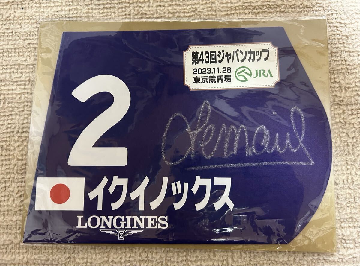 - イクイノックス ジャパンカップ ルメール 騎手 直筆サイン入り ミニゼッケン 競馬 JRA
