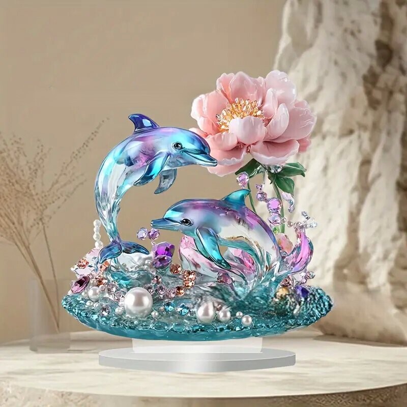 - 【2匹のイルカ&フラワー】 アクリルスタンド 18cm×18cm アクスタ お部屋の飾りに インテリア オブジェ ★