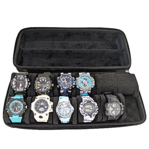 - R2128【稼働品9点セット】SMAEL/STRYVE/LIGE他・クロノグラフ・アナデジ デジタル・クォーツ 自動巻き・メンズ 腕時計 ケース付き