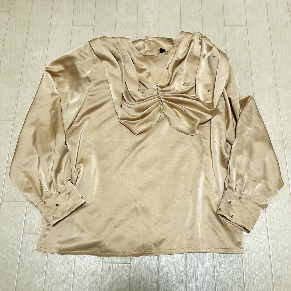 > 和853★④ Leilian レリアン 長袖 シャツ ブラウス バックボタン ビジュー 9 ベージュ レディース