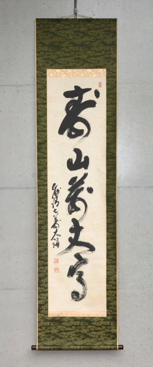 - 30◆初荷です ◆掛軸 臨済宗妙心寺派 第29代管長 春見文勝(無覚)(大楠窟) 「寿山萬丈高」 一行書 真作 紙本 ◆保存箱 茶掛
