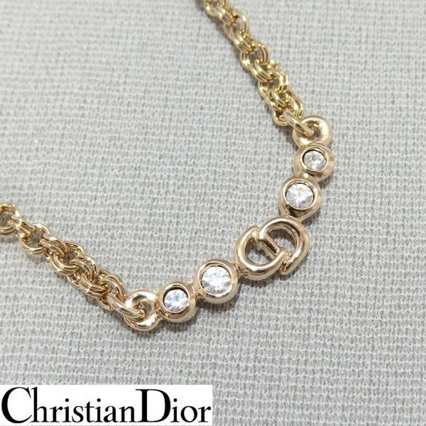 - 美品★Christian Dior ストーン CDロゴ チェーン ネックレス ゴールド ヴィンテージ オールド クリスチャン・ディオール★付属有