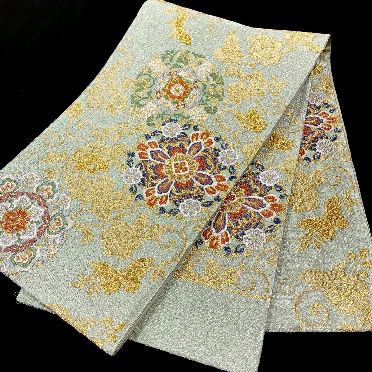 > 着物月花 華文様 袋帯 未仕立て品 六通柄 正絹 金銀糸 西陣織物 参考上代198,000円 ob7179