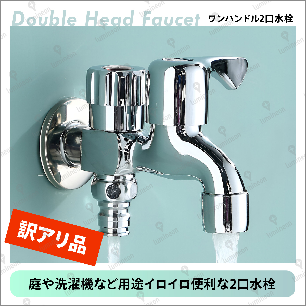 - 水栓 蛇口 2股 2口 ワン ハンドル 水道 手洗い レバー 交換 単水栓 二股 庭 ガーデニング 洗濯機 花壇 ワンタッチ 継ぎ手 双口 便利 g287 2