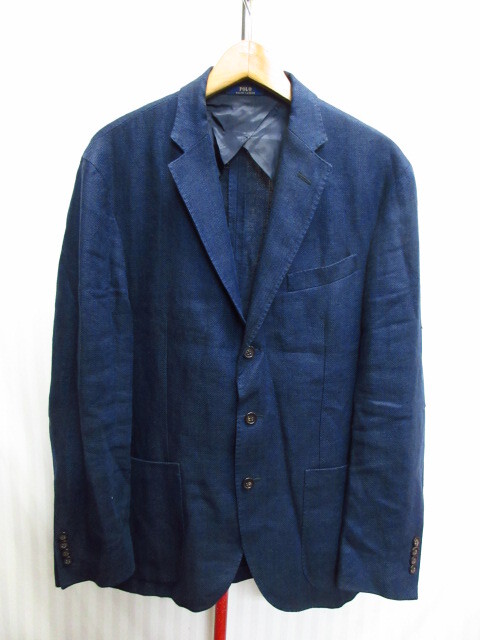 - ラルフローレン リネンジャケット メンズL 40 紺ブレザー 麻100%使用テーラードジャケット サマージャケット 春夏スーツジャケット10012
