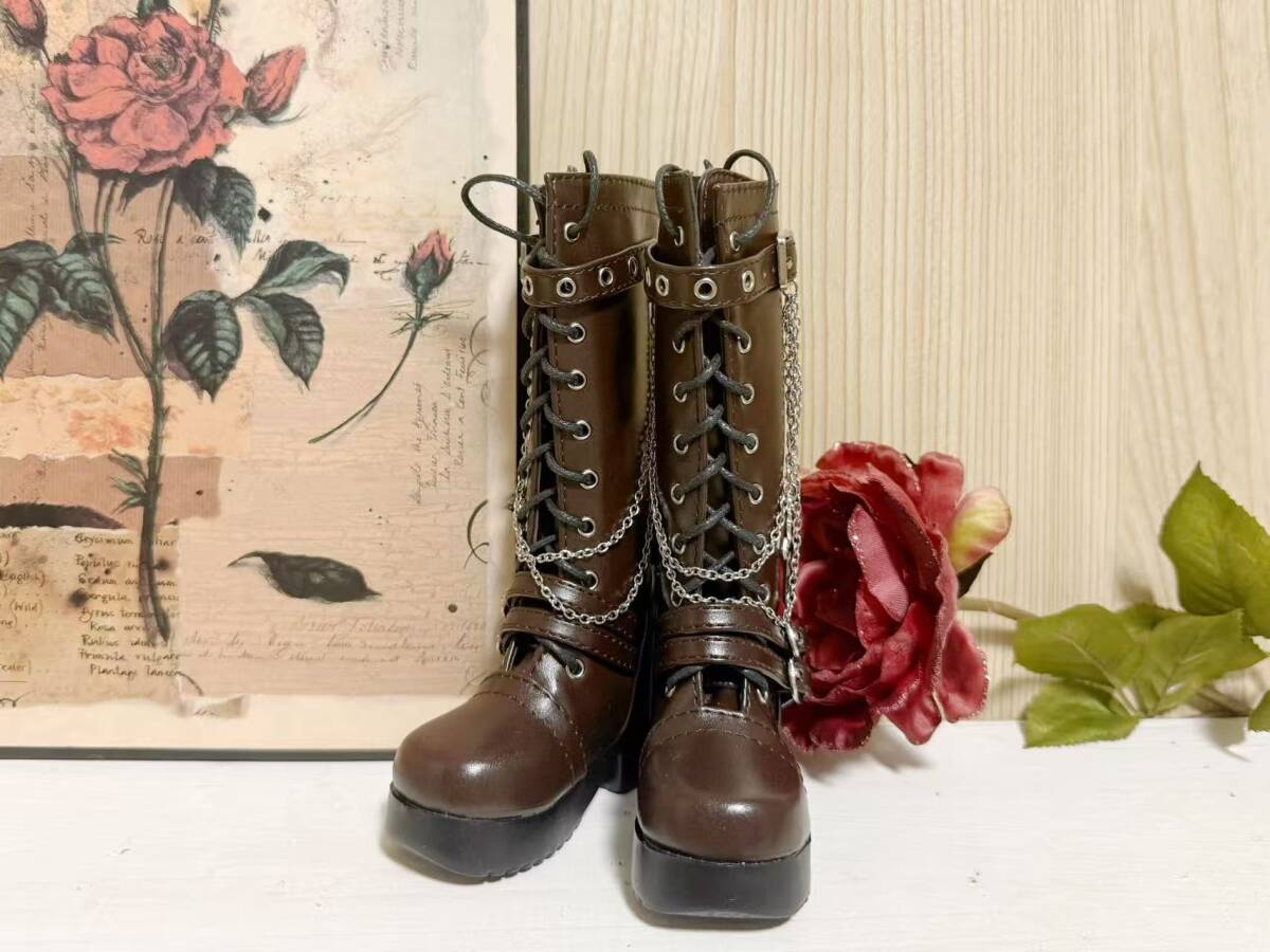 - 魔魔★SD13-SD17男 チェーン付き編み上げロングブーツ ブラウン★新品