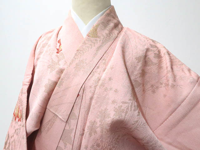 > 《古美術京松》【着物】紬 セミアンティーク ラメ糸 花文 身丈約150cm 裄丈約63.5cm kyo7z03-36