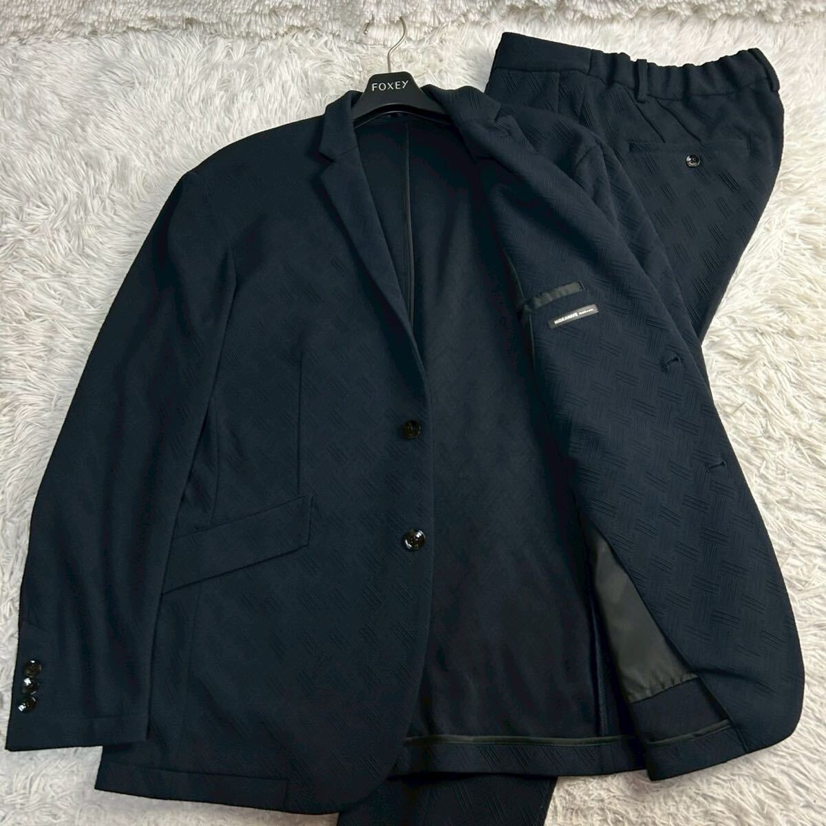 > ●未使用級/L-XL相当/抜群の着心地◎ HIDEAWAYS BLACK NICOLE ニコル イージースーツ セットアップ 上下 立体刺繍 総柄 ストレッチ 刻印 50