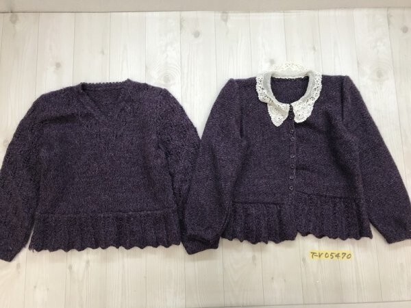 - レディース ハンドメイド風 Vネック ニットセーター・カーディガン アンサンブル セット 紫