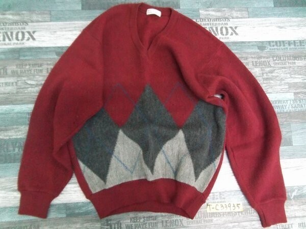 > Arnold Palmer アーノルドパーマー メンズ Vネック アーガイル ニットセーター M エンジ