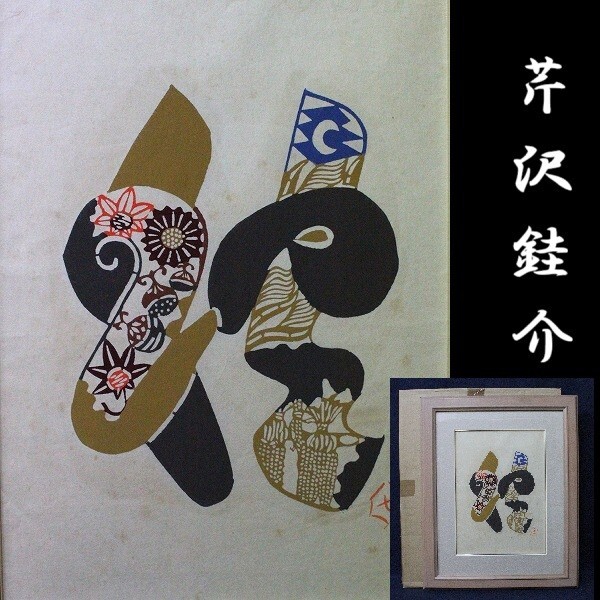 - 芹沢銈介 染色家 型絵染 「秋」 和紙に木版画 人間国宝 額装入 E41