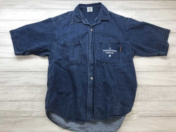 > スタジオセブン GU STUDIO SEVEN 三代目 J Soul Brothers EXILE NAOTO 半袖 デニムシャツ コットン100% ビッグシルエット メンズ M 紺