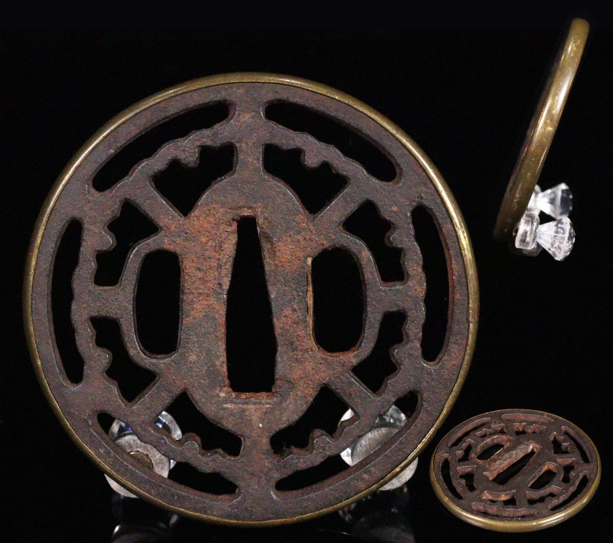 - ASAHI.時代武具 鉄地 重圧 透かし鍔 銅地覆輪 7.3cm 赤坂 尾張 刀装具[7875qt]