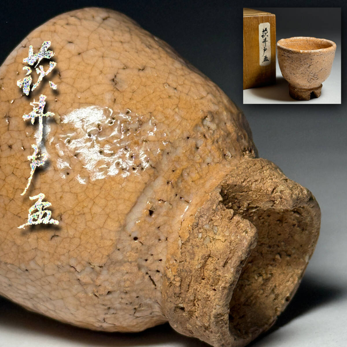 > 【茂蔵】古陶磁コレクター旧蔵品 萩井戸盃 割高台 枇杷色 伝世 酒器 江戸時代初期【検:古志野 古伊賀 古萩 古瀬戸 古信楽 古織部】