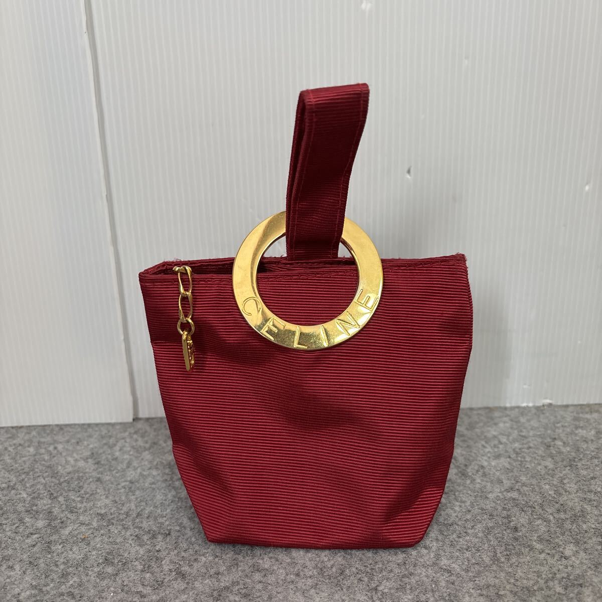 - X206 CELINE セリーヌ ポーチ ミニバッグ ロゴ サークル 金具ゴールド ワインレッド