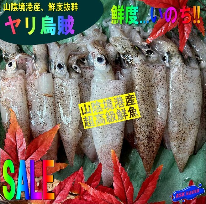 - 鮮度抜群「ヤリ烏賊 小1kg 」柔らかです!! お刺身可、山陰境港産