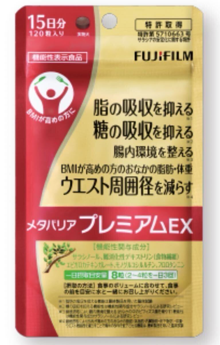 - 富士フイルム メタバリア プレミアムEX 120粒 15日分 期限2028年2月まで ダイエット サプリ サラシア 機能性表示食品 サプリメント