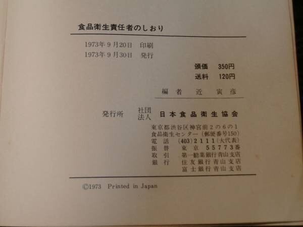 - qze422】食品衛生責任者のしおり 厚生省環境衛生局監修 日本食品衛生協会 1973年